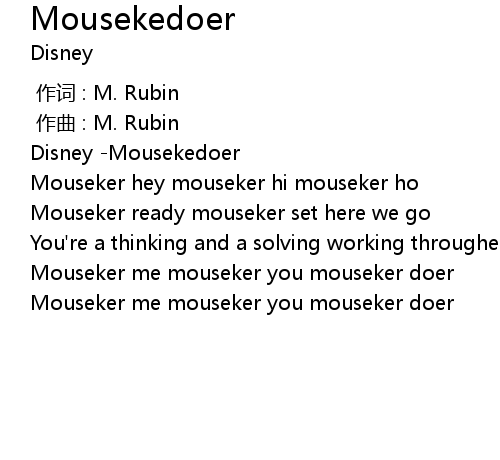 | [00:12.440] | Mouseker me mouseker you mouseker doer |