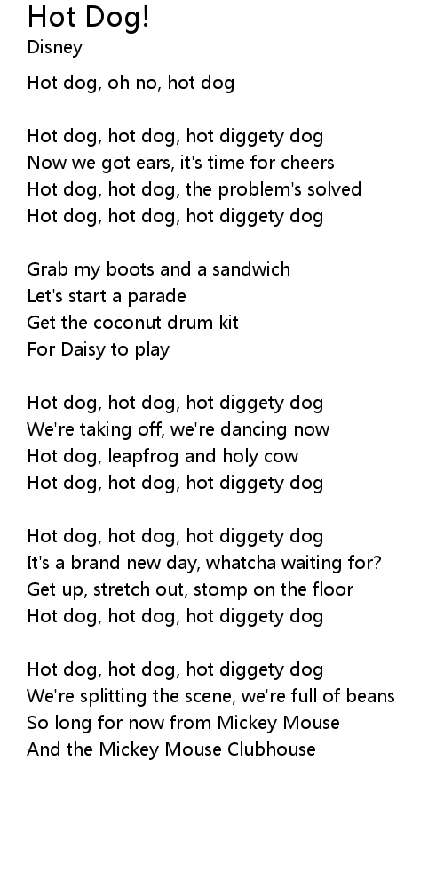 Hot dog, hot dog, hot diggety dog |