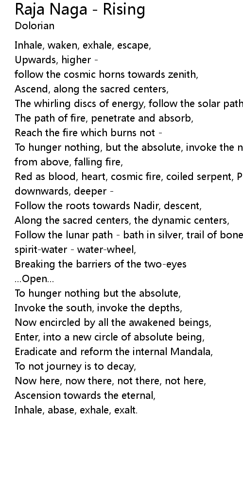 | Red as blood, heart, cosmic fire, coiled serpent, Purification, regeneration, downwards, deeper - | |