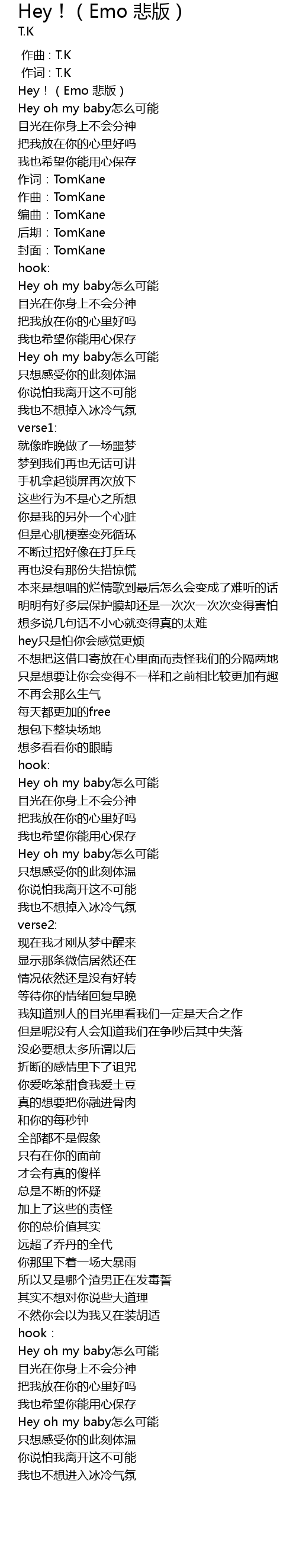 | [00:00.00] | Hey! Emo bēi bǎn |