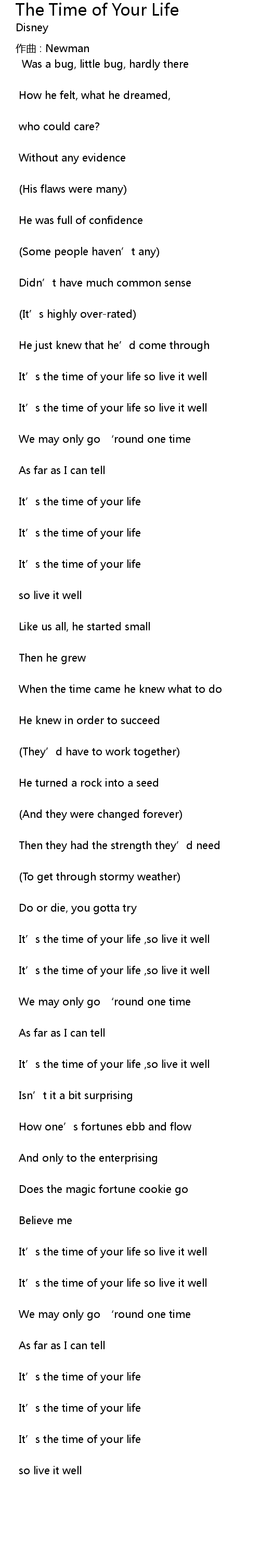| It' s the time of your life so live it well | |