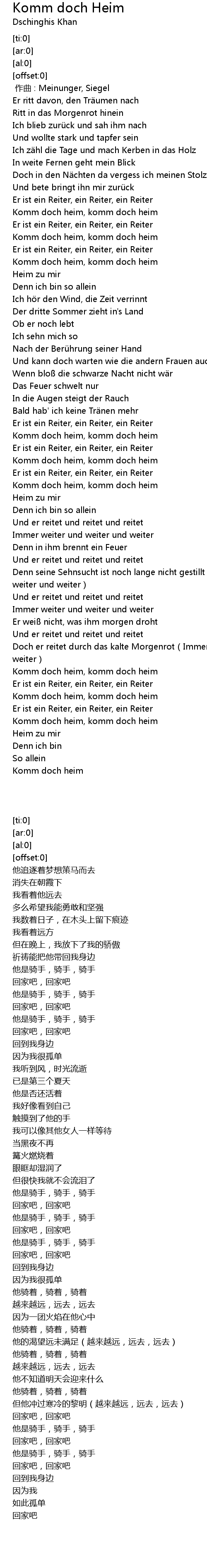 | [02:37.48] | Komm doch heim, komm doch heim |