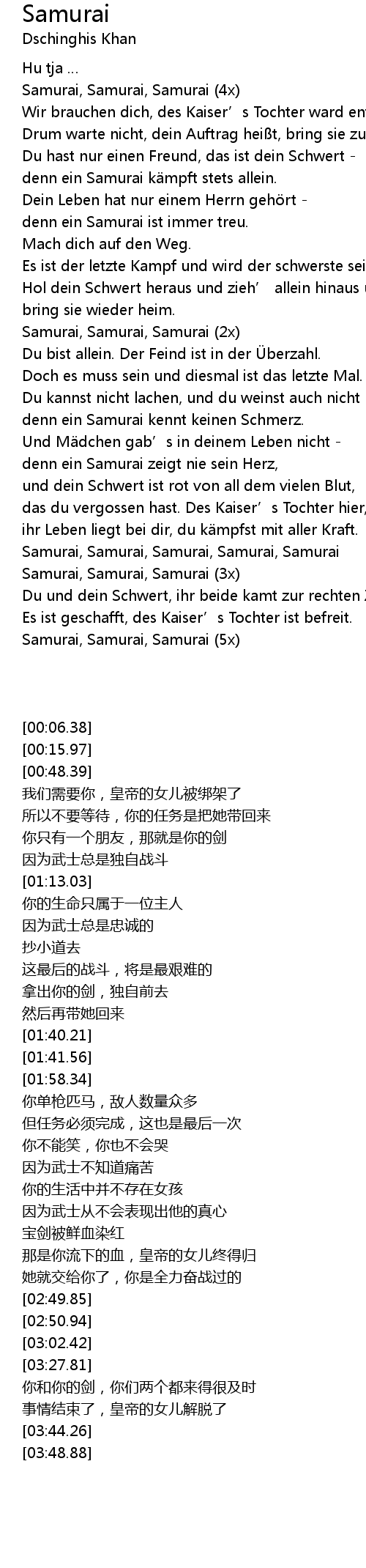 | Samurai, Samurai, Samurai, Samurai, Samurai | |