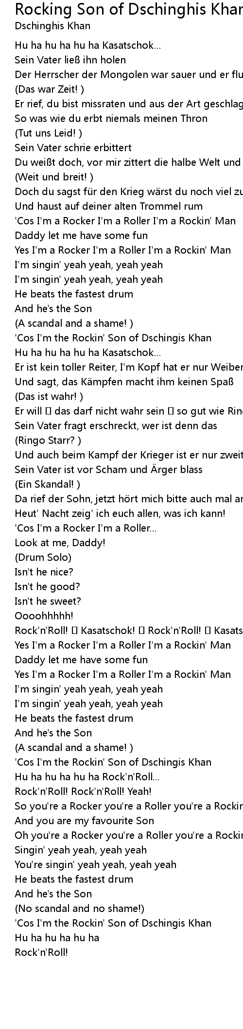 | 'Cos I'm the Rockin' Son of Dschingis Khan | |
