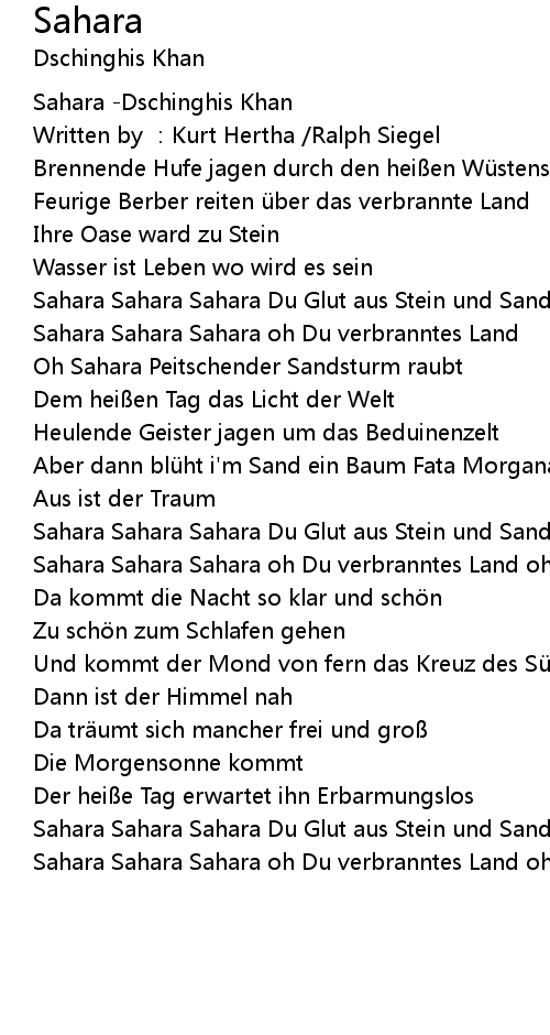 | [02:41.681] | Sahara Sahara Sahara oh Du verbranntes Land oh Sahara |