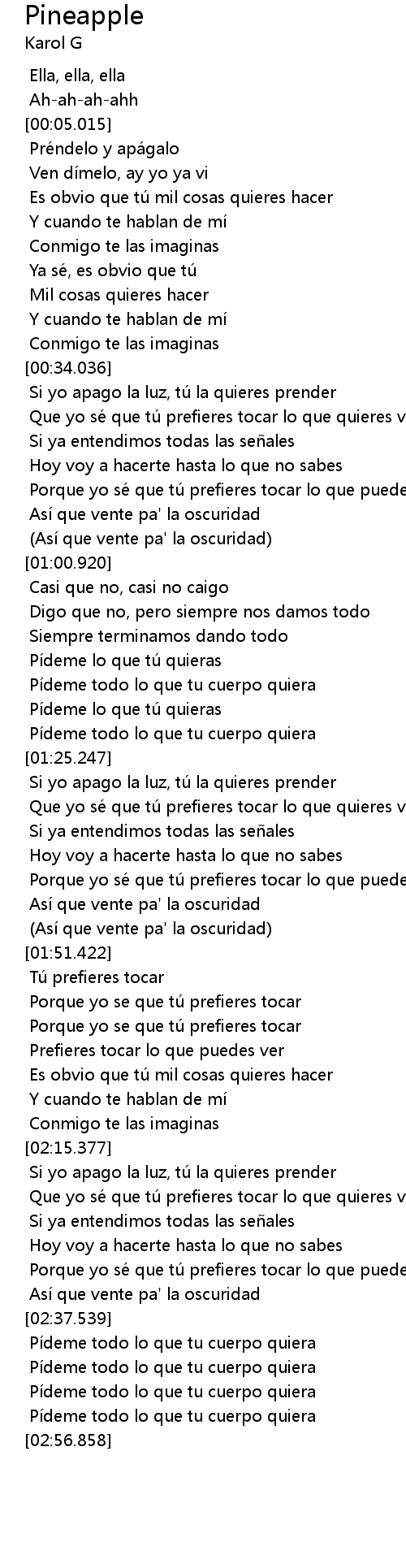 | [02:54.249] | Pi deme todo lo que tu cuerpo quiera |
