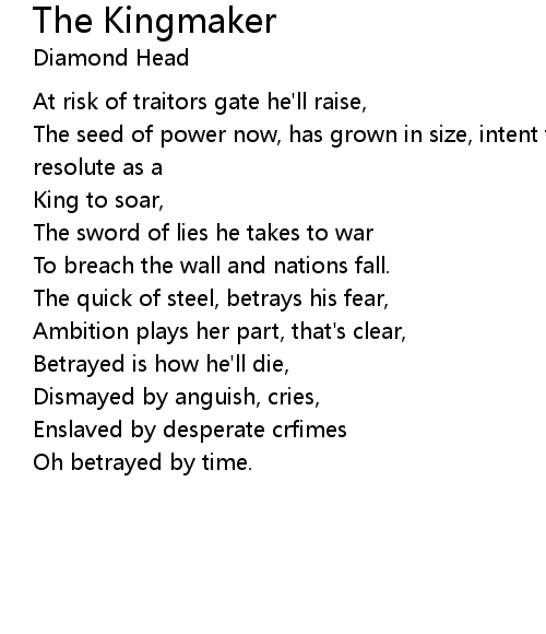 | The seed of power now, has grown in size, intent to crown his bloody prize, ooh, resolute as a | |