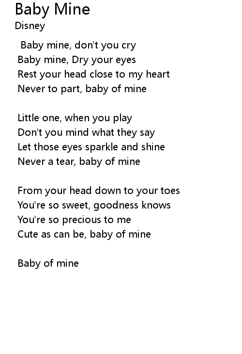 | Baby mine, Dry your eyes | |