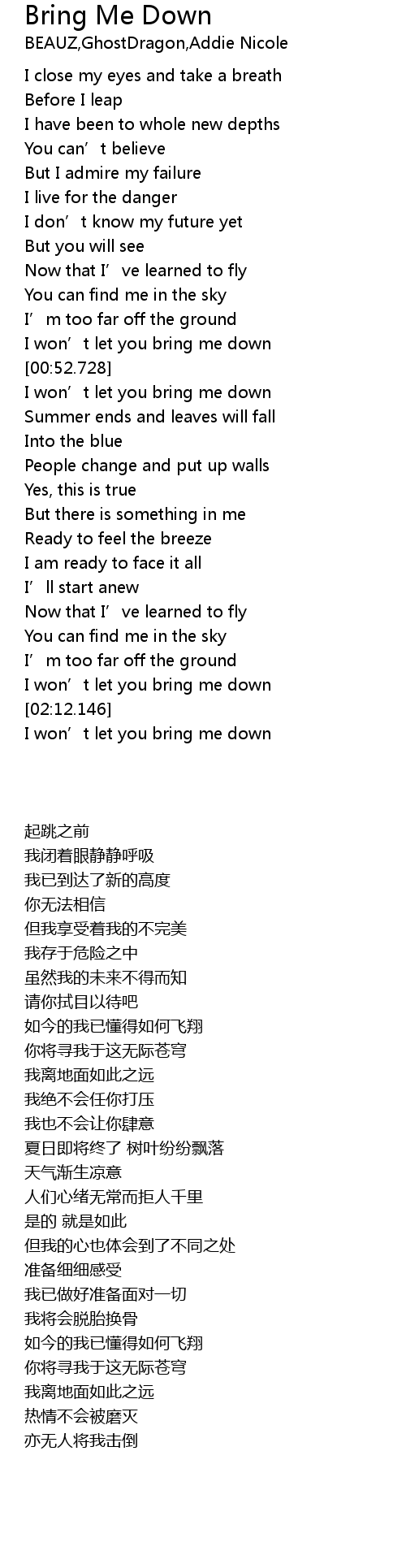 | [00:49.400] | I won’t let you bring me down |