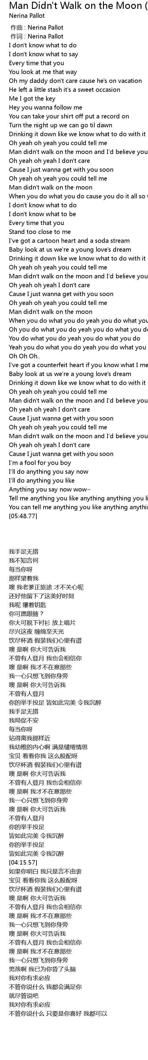 | [05:05.04] | Man didn' t walk on the moon and I' d believe you |