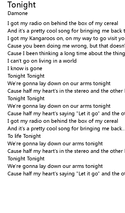 Cause you been doing me wrong, but that doesn't matter tonight |