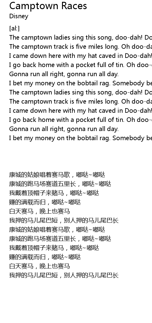 The camptown ladies sing this song, doo-dah! Doo-dah! |