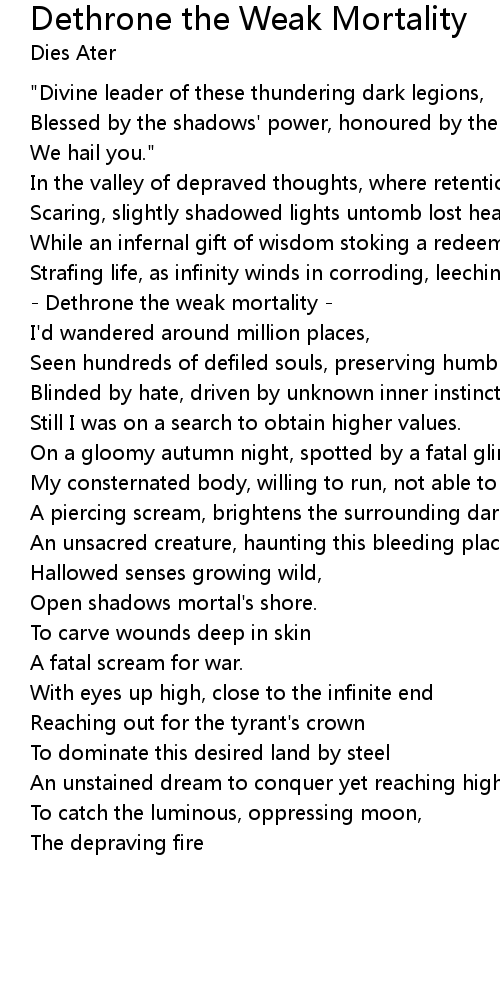 - Dethrone the weak mortality - |
