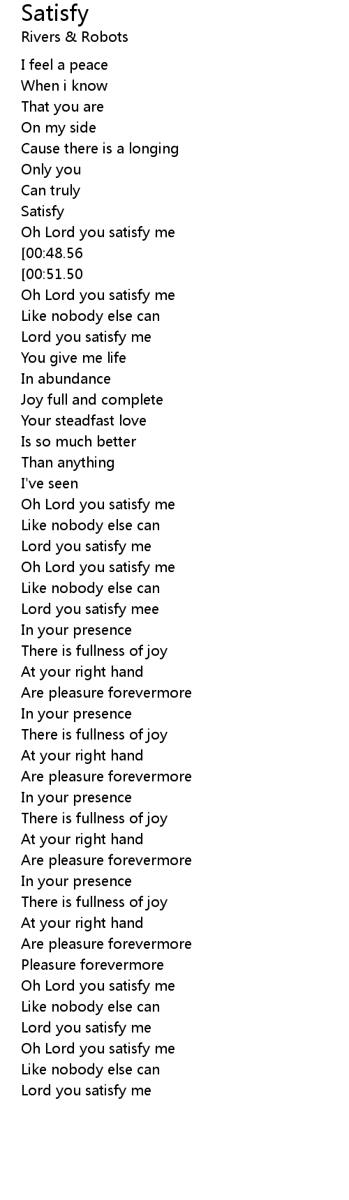 Oh Lord you satisfy me |