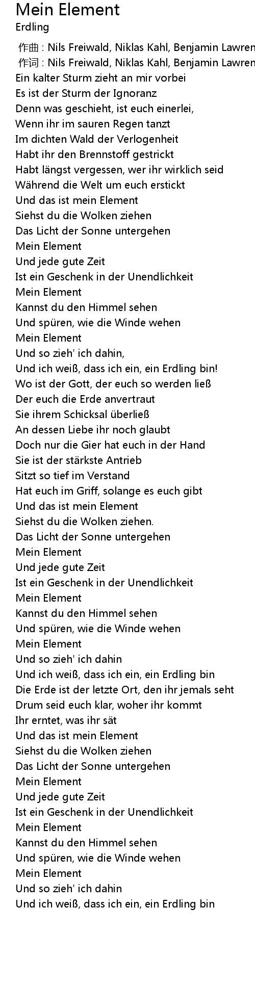 | [00:01.000] | 作词 : Nils Freiwald, Niklas Kahl, Benjamin Lawrenz, Chris Harms |