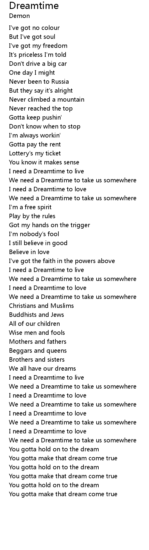 I need a Dreamtime to love |