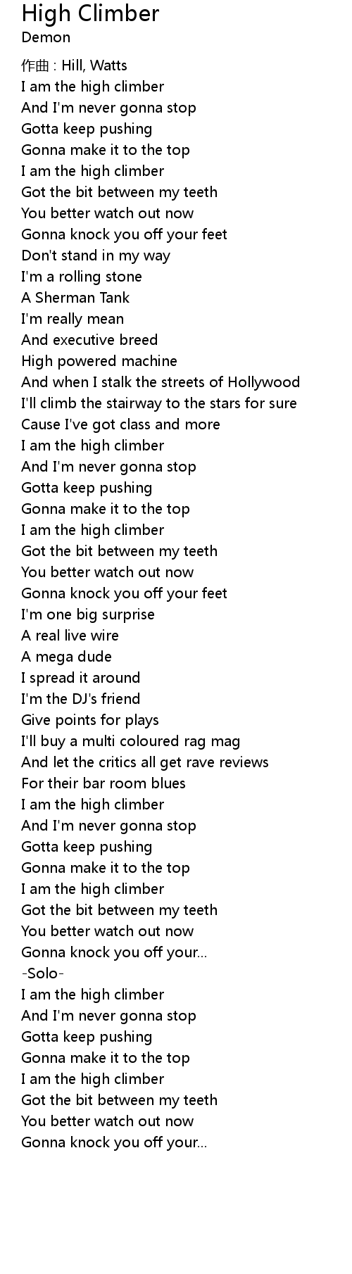 | Song | High Climber |