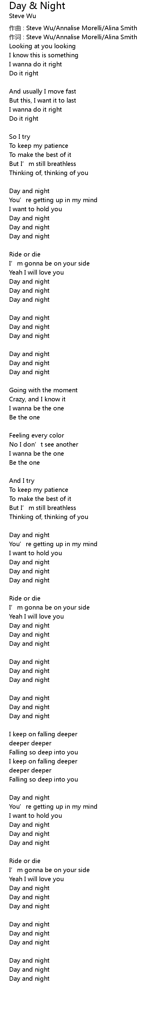 | 作词 : Steve Wu/Annalise Morelli/Alina Smith | |