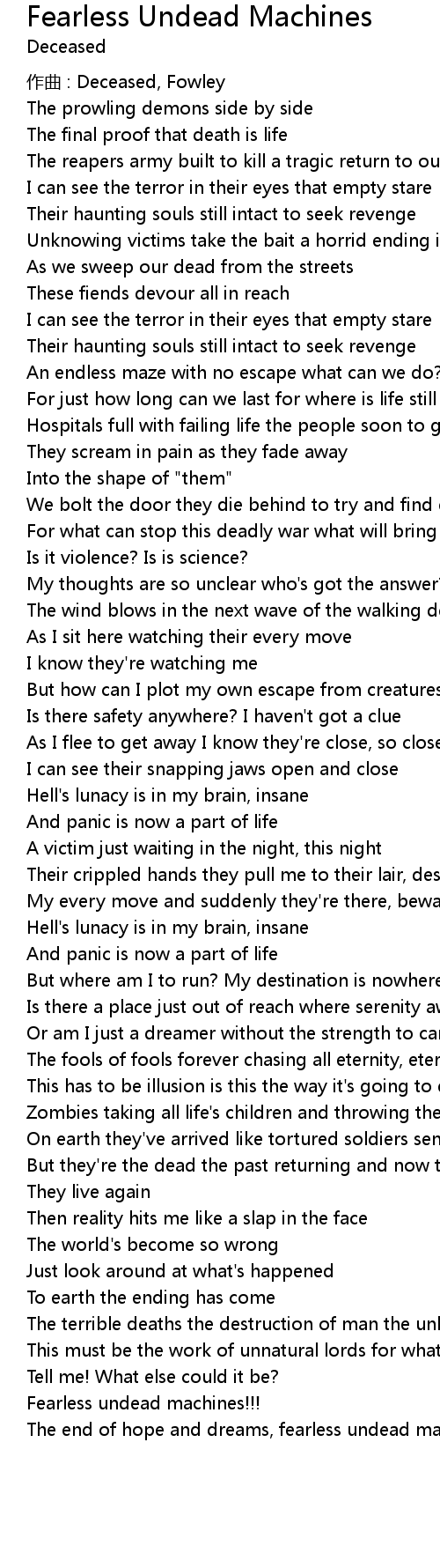 | Song | Fearless Undead Machines |