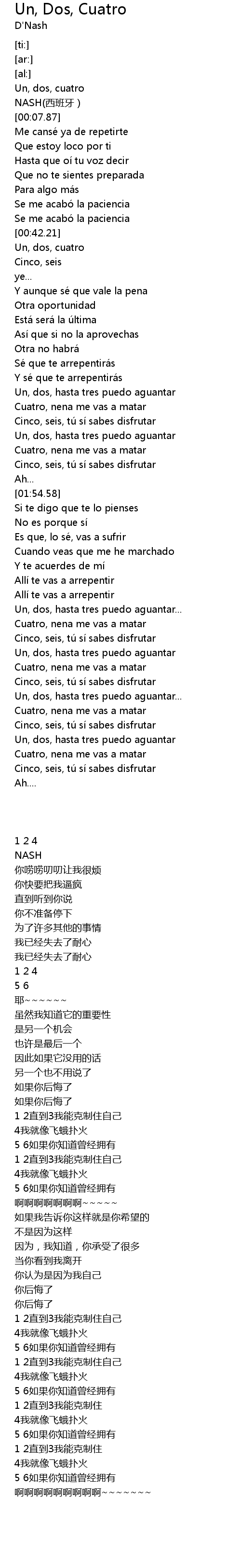 | [00:43.58] | Un, dos, cuatro |