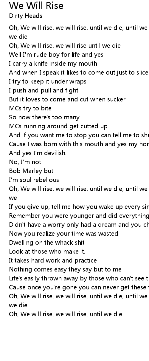 Oh, We will rise, we will rise, until we die, until we die, until we die, until we |