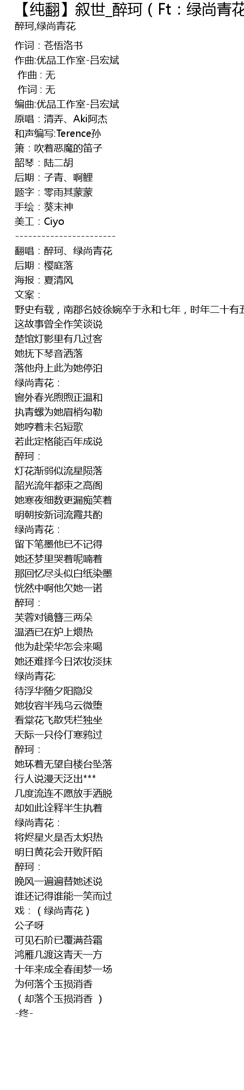 | [00:20.40] | 翻唱:醉珂、绿尚青花 |