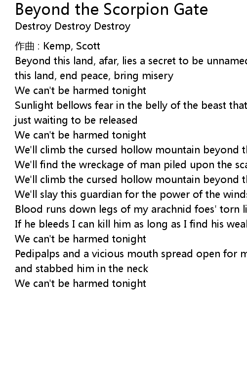 | We'll climb the cursed hollow mountain beyond the scorpion gate | |