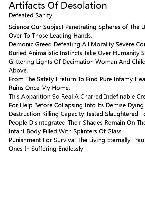 From The Safety I return To Find Pure Infamy Heading Tortured Screams Out Of The Ruins Once My Home. |