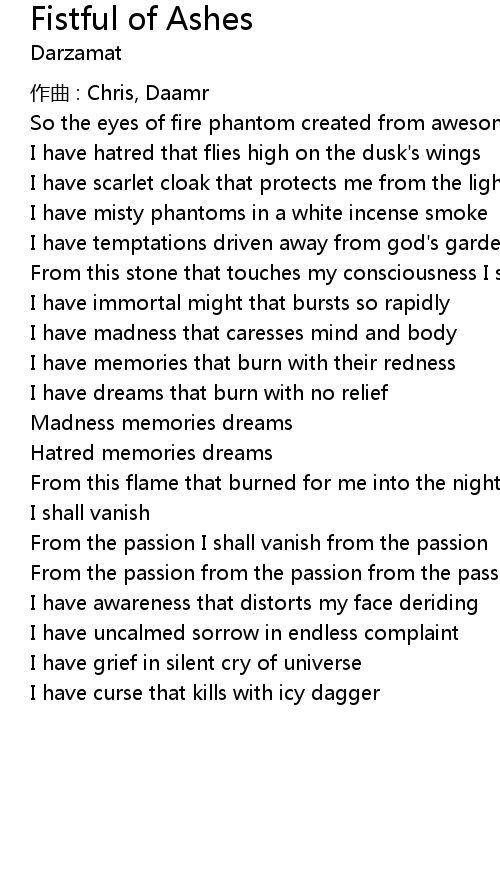 | From this stone that touches my consciousness I shall make a fistul of ashes | |