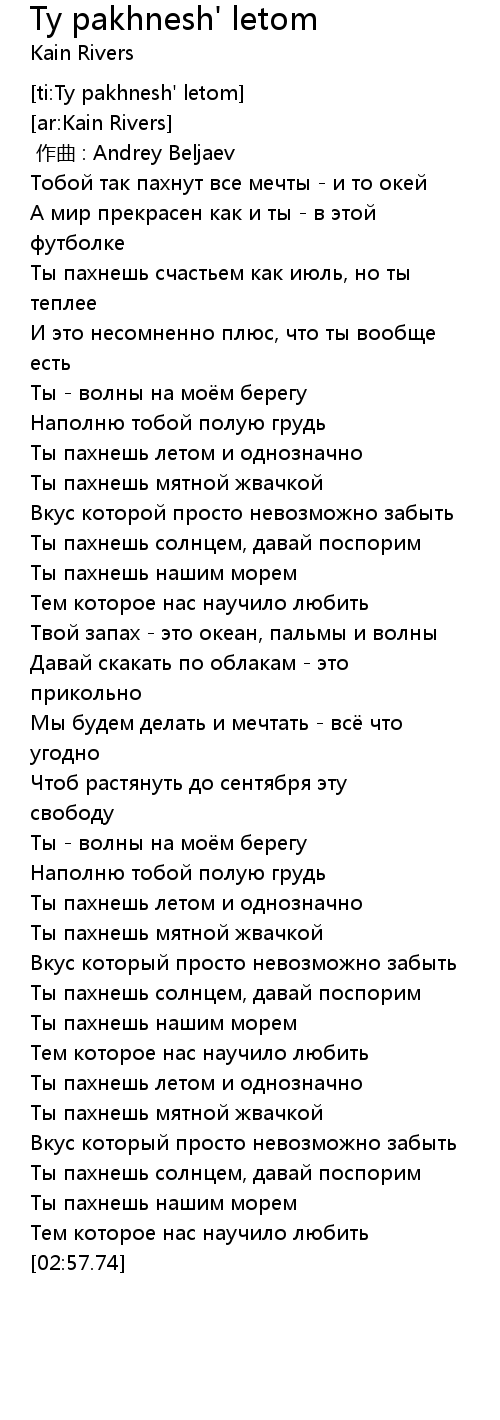 [02:05.14] Ты пахнешь солнцем, давай поспорим