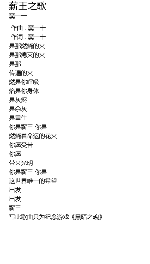| [01:14.053] | 写此歌曲只为纪念游戏《黑暗之魂》 |