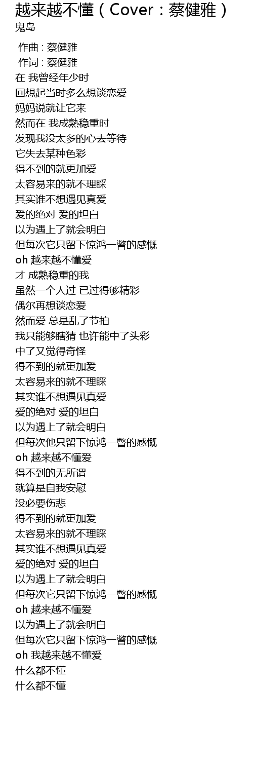 | [02:59.928] | oh 越来越不懂爱 |