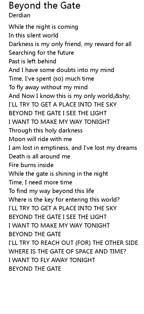 | BEYOND THE GATE I SEE THE LIGHT | |