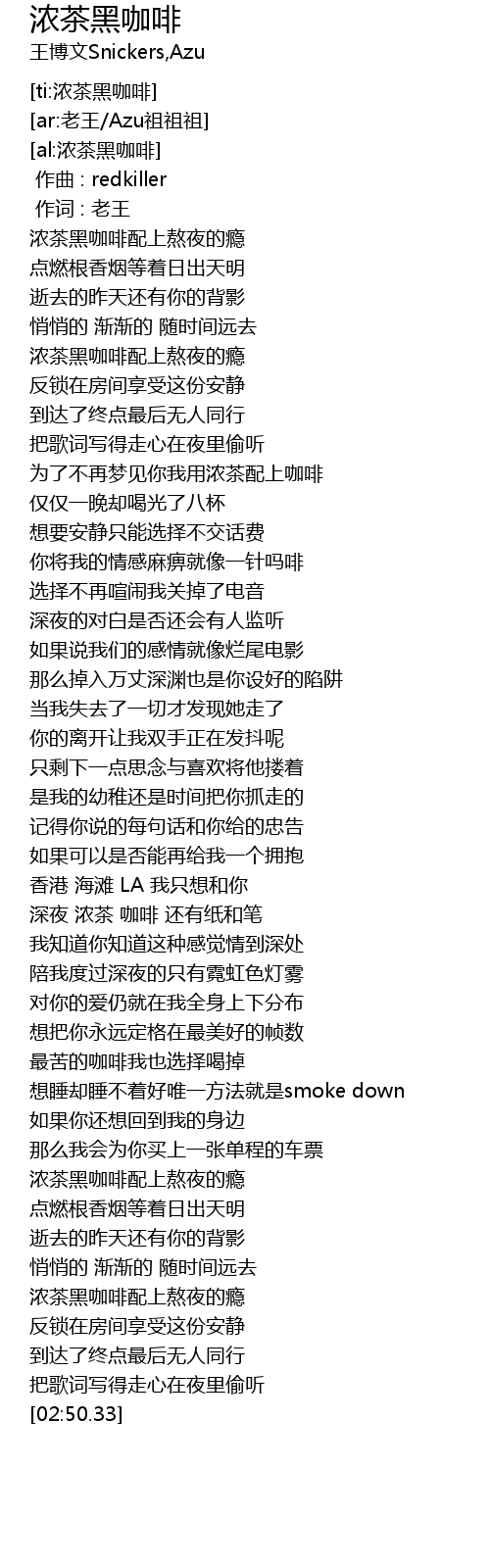 | [00:42.40] | 浓茶黑咖啡配上熬夜的瘾 |