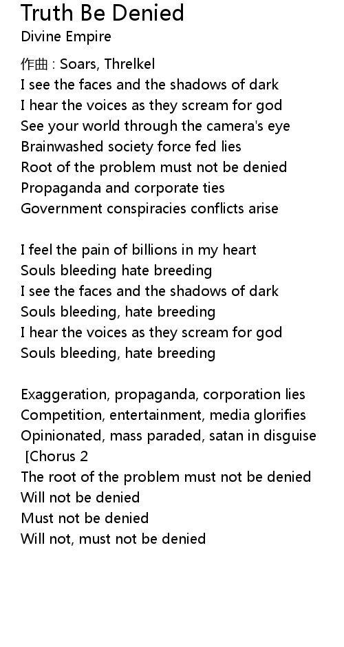 | The root of the problem must not be denied (2x) [Chorus 1] [Chorus 2] | |
