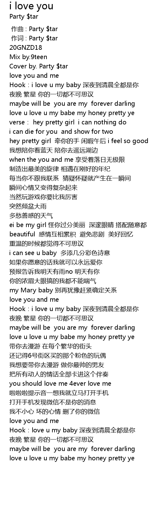 | [02:07.93] | Hook: i love u my baby shen ye dao qing chen quan dou shi ni |