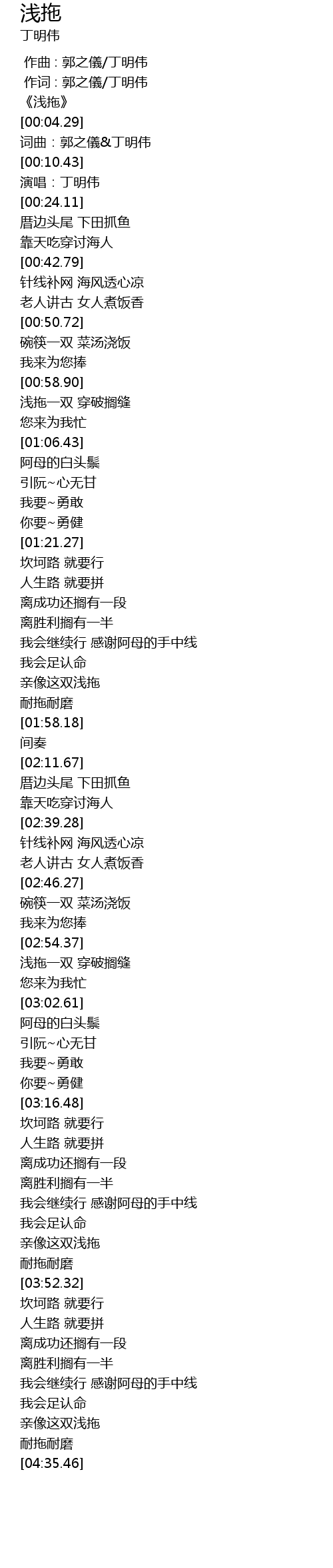 | [00:59.45] | 浅拖一双 穿破搁缝 |