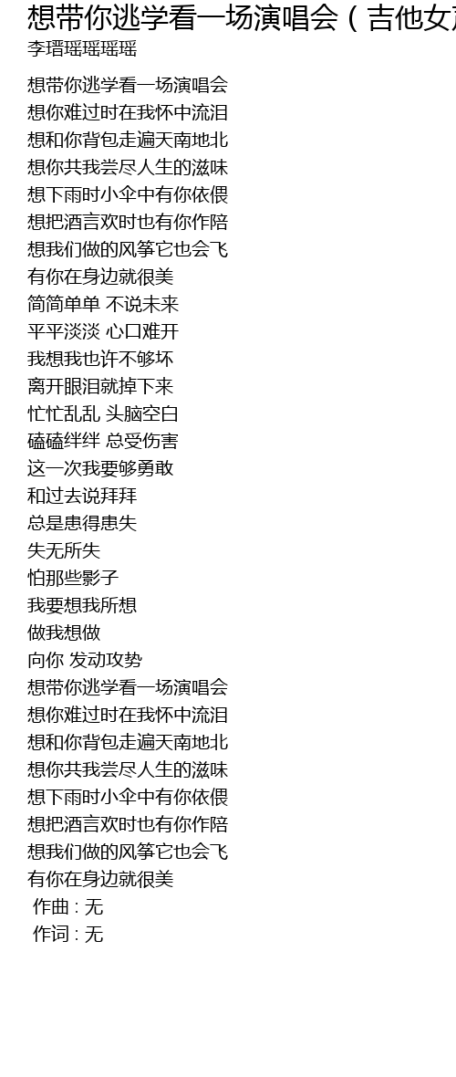 | Song | 想带你逃学看一场演唱会(吉他女声弹唱)(Cover 麦小兜) |