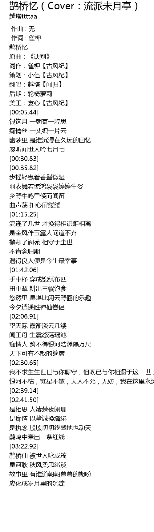 | [03:23.17] | 鹊桥仙 被世人咏成篇 |