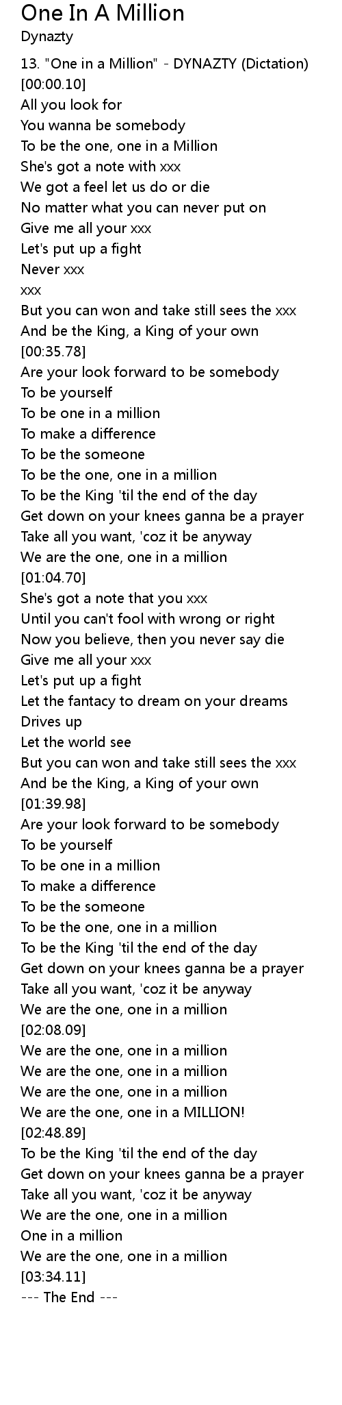 To be the one, one in a Million |