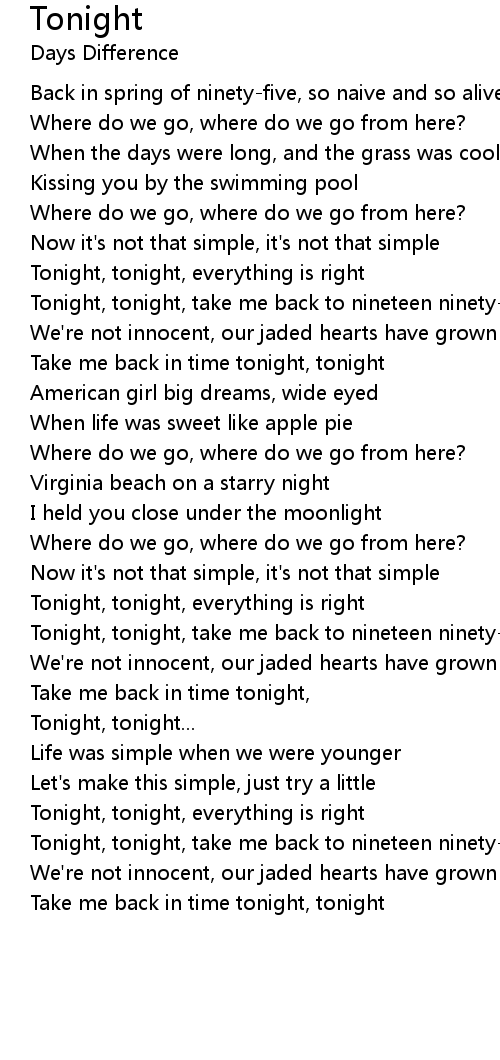 Tonight, tonight, take me back to nineteen ninety-five |