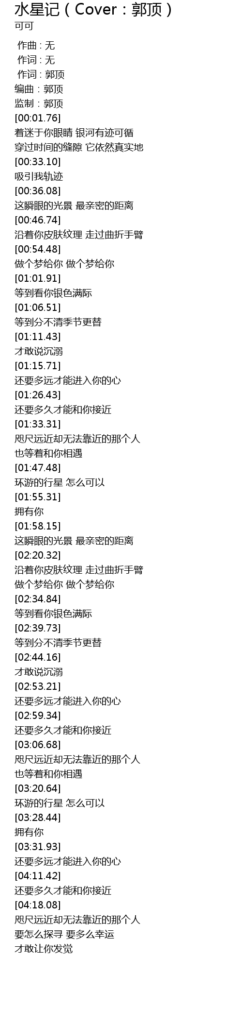 | [00:19.33] | 着迷于你眼睛 银河有迹可循 |