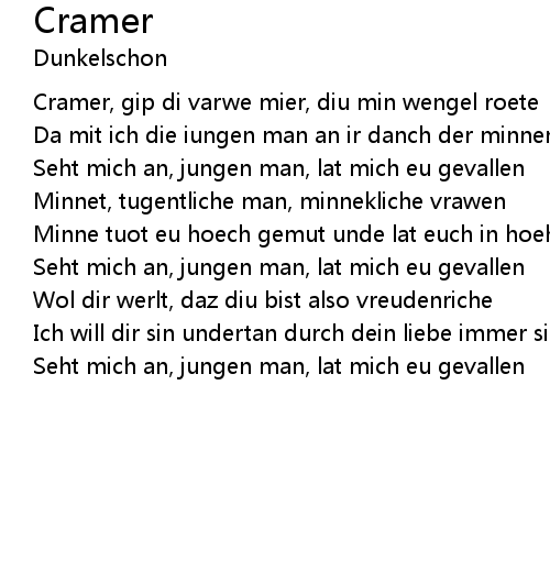 | Cramer, gip di varwe mier, diu min wengel roete | |