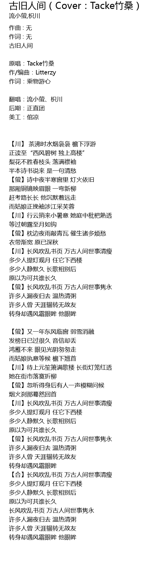 | 翻唱:流小萤、枳川 | |