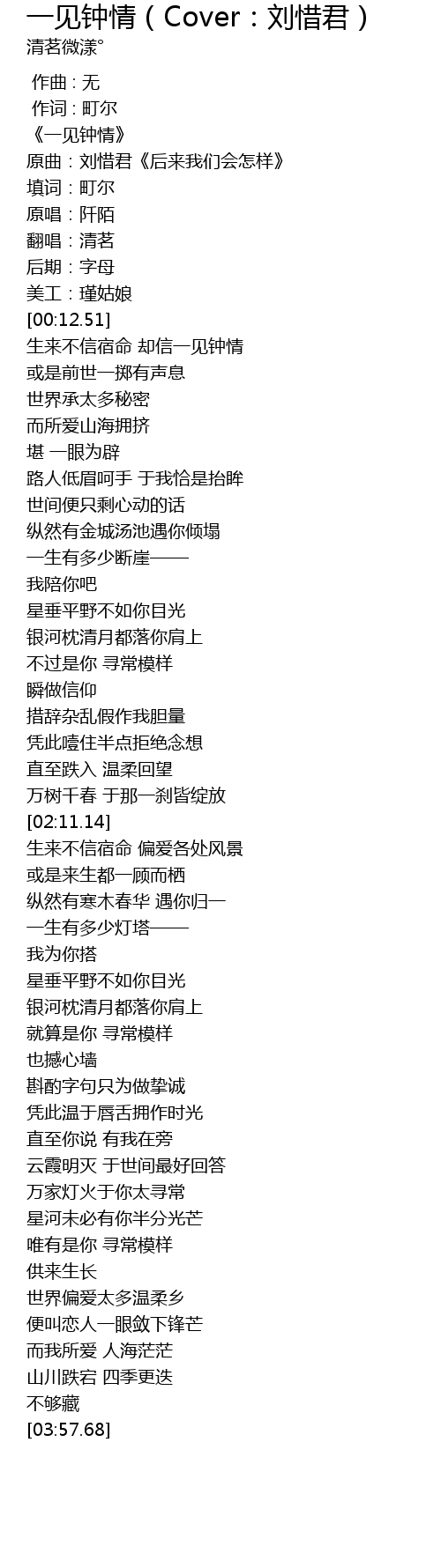 | [00:31.58] | 生来不信宿命 却信一见钟情 |