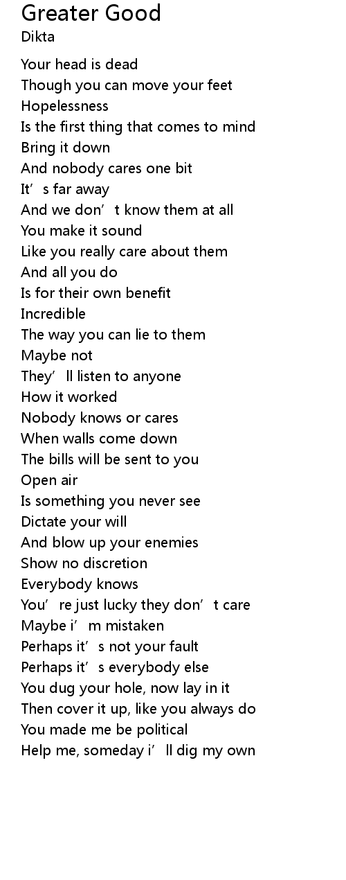 | Song | Greater Good |