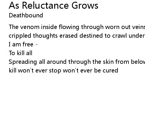 | The venom inside flowing through worn out veins dripping through the cracks crippled thoughts erased destined to crawl underneath the putrid surface | |