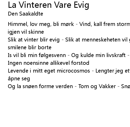 | Is vil bli min f lgesvenn Og kulde min livskraft Ingen vil bli savnet Ingen noensinne allikevel forstod | |