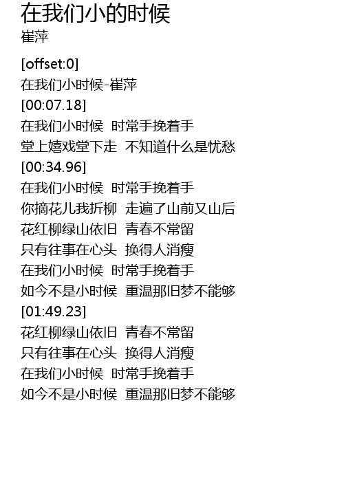 | [00:37.43] | zài wǒ men xiǎo shí hòu shí cháng shǒu wǎn zhuó shǒu |