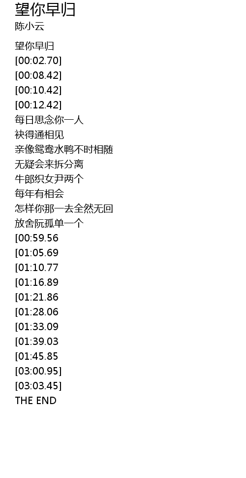 | [00:00.00] | 望你早归 |